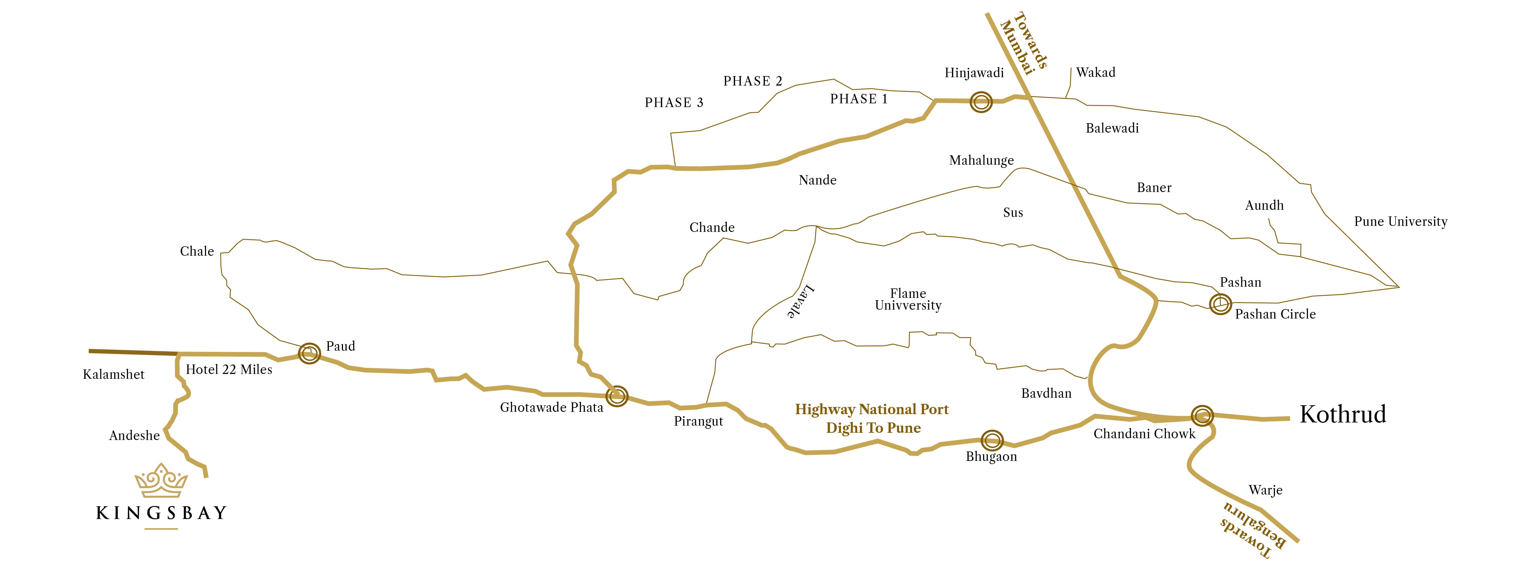 A beautifully crafted gated community just to perfect your weekends. The farmhouse plots are surrounded by the majestic mountains of paud just 27 Km away from chandani chowk, Pune. With its excellent connectivity, resort - style amenities, & fascinating scenery, The land will be a breath of fresh air to comfortably keep you away from your everyday stress. Enter this incredible land of peace & tranquillity for an uninterrupted gateway at Kingsbay.